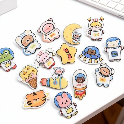 Создавайте персонализированные акриловые заколки для волос, значки на пуговицах и аксессуары с напечатанными на заказ логотипами, рисунками мультфильмов, персонажами аниме или именами. Эти универсальные булавки имеют магнитную основу для надежного крепления.